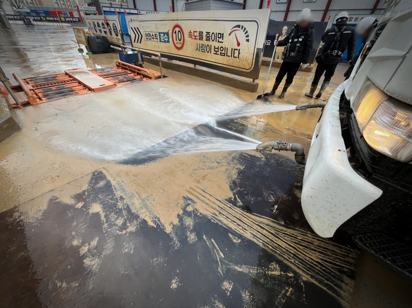 터파기가 진행중인 현장이라 수많은 토사 운반 차량들의 동선에 슬러지가 쌓일수밖에 없습니다.